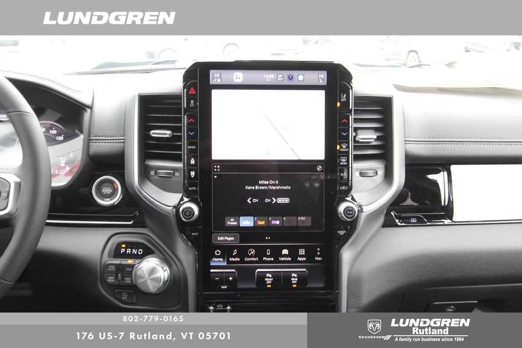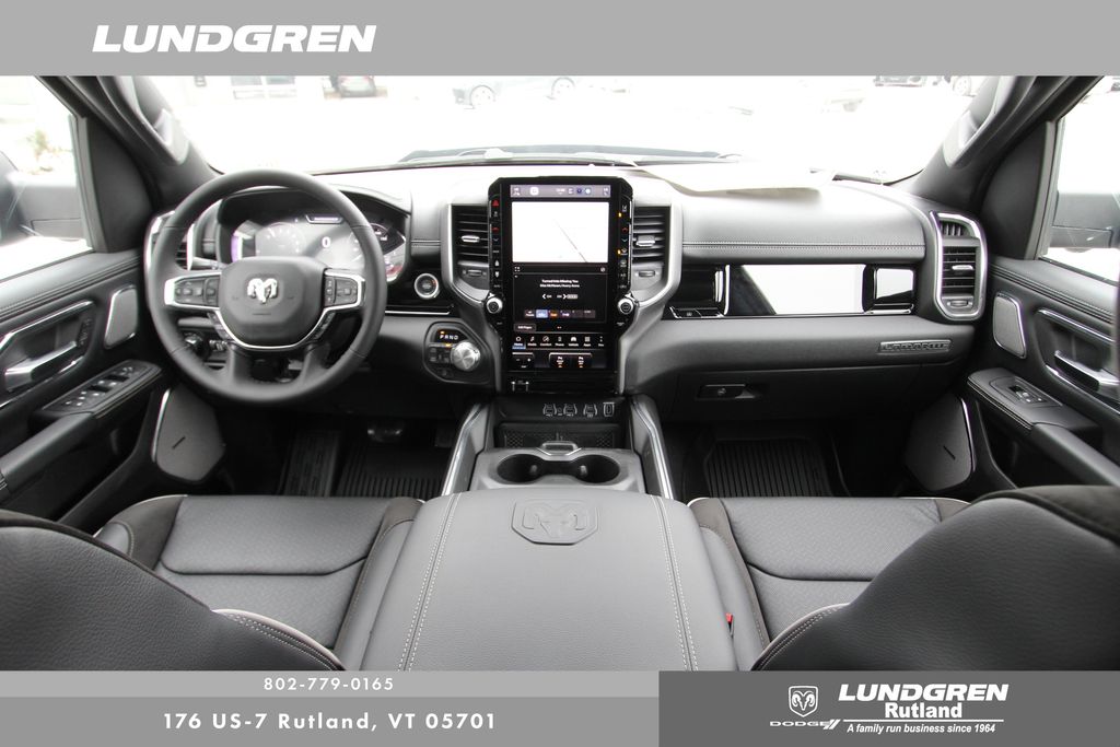 4WD 2026 Ram 1500 Laramie Canyon Lake 8-Speed Automatic Bed Utility Group (Exterior 115V AC Outlet, MOPAR 4 Adjustable Cargo Tie-Down Hooks, and MOPAR Spray in Bedliner), Laramie Level 2 Equipment Group (14.4" Touchscreen Display, 4G LTE Wi-Fi Hot Spot, Cluster 12" TFT Color Display, Connected Travel and Traffic Services, Connectivity - US/Canada, Front Passenger Interactive Display, GPS Navigation, Harman/Kardon 19 Speaker Premium Sound, Integrated Center Stack Radio, Integrated Voice Command with Bluetooth, Power Tailgate, Radio: Uconnect 5 Nav with 14.4" Display, Rain Sensitive Windshield Wipers, SiriusXM Radio Service, SiriusXM with 360L, and USB Host Flip), Night Edition (Accent Color Door Handles, Accent Color Premium Power Mirrors, Accent Color Tailgate Handle, Anti-Spin Differential Rear Axle, Auto Power-Folding Mirrors, Auto-Dimming Exterior Driver Mirror, Black Exterior Truck Badging, Black Headlamp Bezels, Black Interior Accents, Black Painted Exterior Mirrors Caps, Black Tail Lamp Bezels, Body Color Front Bumper, Body Color Rear Bumper with Step Pads, Convex Wide-Angle Exterior Mirror Insert, Dual Exhaust with Black Tips, Exterior Mirrors Approach Lamps, Exterior Mirrors Courtesy Lamps, Exterior Mirrors with Heating Element, Exterior Mirrors with Memory, Exterior Mirrors with Supplemental Signals, Grille Surround 3 Black Texture 2 Black, Pirelli Brand Tires, Proximity Approach/Departure Lamps, RAM Grille Badge - Black, Sport Performance Hood, and Wheels: 22" x 9" Forged Aluminum), Quick Order Package 21H Laramie, 10 Speakers, 4-Wheel Disc Brakes, ABS brakes, Active Noise Control System, Adjustable pedals, Air Conditioning, Alloy wheels, AM/FM radio: SiriusXM with 360L, Apple CarPlay/Android Auto, Audio memory, Auto High-beam Headlights, Auto-dimming door mirrors, Auto-dimming Rear-View mirror, Automatic temperature control, Brake assist, Bumpers: chrome, Chrome Exterior Mirrors, Compass, Delay-off headlights, Driver door bin, Driver vanity mirror, Dual front impact airbags, Dual front side impact airbags, Electronic Stability Control, Front anti-roll bar, Front Bucket Seats, Front Center Armrest w/Storage, Front dual zone A/C, Front fog lights, Front License Plate Bracket, Front reading lights, Front wheel independent suspension, Fully automatic headlights, Garage door transmitter, Heated door mirrors, Heated front seats, Heated rear seats, Heated steering wheel, Illuminated entry, Leather steering wheel, Leather Trimmed Bucket Seats, Low tire pressure warning, Memory seat, MOPAR Front and Rear Rubber Floor Mats, MyFlexCare Service Plan, Navigation System, Occupant sensing airbag, Off-Road Information Pages, Outside temperature display, Overhead airbag, Overhead console, Panic alarm, ParkView Rear Back-Up Camera, Passenger door bin, Passenger vanity mirror, Pedal memory, Power Deployable Running Boards, Power door mirrors, Power driver seat, Power passenger seat, Power steering, Power windows, Radio data system, Radio: Uconnect 5 Navigation with 12.0" Display, RAM Grille Badge - Chrome, Rear anti-roll bar, Rear reading lights, Rear seat center armrest, Rear step bumper, Remote keyless entry, Security system, Speed control, Split folding rear seat, Steering wheel mounted audio controls, Tachometer, Telescoping steering wheel, Tilt steering wheel, Traction control, Trailer Brake Control, Trip computer, Turn signal indicator mirrors, Variably intermittent wipers, Ventilated front seats, Voltmeter, and Wheels: 20" x 9" Premium Paint/Polish.