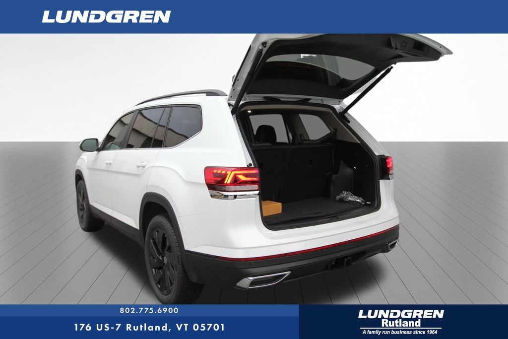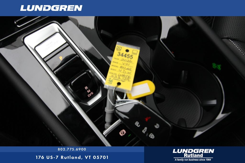 AWD 2026 Volkswagen Atlas 2.0T SE w/Technology Opal White Pearl 8-Speed Automatic with Tiptronic Black Wheel Package (Wheels: 20" Multi-Spoke Black Painted Alloy), Panoramic Sunroof Package (Power Tilting and Sliding Panoramic Sunroof), Trailer Hitch Extras, 3rd row seats: split-bench, 4-Wheel Disc Brakes, 4-Wheel Independent Suspension, 6 Speakers, ABS brakes, Air Conditioning, Alloy wheels, AM/FM radio: SiriusXM with 360L, Auto High-beam Headlights, Auto-dimming Rear-View mirror, Automatic temperature control, Brake assist, Bumpers: body-color, Compass, Delay-off headlights, Driver door bin, Driver vanity mirror, Dual front impact airbags, Dual front side impact airbags, Electronic Stability Control, Emergency communication system: VW Car-Net Safe & Secure 5-year, Exterior Parking Camera Rear, First Aid Kit, Four wheel independent suspension, Front anti-roll bar, Front Bucket Seats, Front Center Armrest, Front dual zone A/C, Front fog lights, Front reading lights, Fully automatic headlights, Garage door transmitter: HomeLink, Heated and Actively Ventilated Front Bucket Seats, Heated door mirrors, Heated front seats, Heated steering wheel, Illuminated entry, Low tire pressure warning, Occupant sensing airbag, Outside temperature display, Overhead airbag, Overhead console, Panic alarm, Passenger door bin, Passenger vanity mirror, Perforated V-Tex Leatherette Seating Surfaces, Power door mirrors, Power driver seat, Power Liftgate, Power steering, Power windows, Radio data system, Radio: MIB3 Composition Media, Rain sensing wipers, Rear air conditioning, Rear anti-roll bar, Rear reading lights, Rear seat center armrest, Rear window defroster, Rear window wiper, Remote keyless entry, Security system, Speed control, Speed-sensing steering, Split folding rear seat, Spoiler, Steering wheel mounted audio controls, Tachometer, Telescoping steering wheel, Tilt steering wheel, Traction control, Trip computer, Turn signal indicator mirrors, Variably intermittent wipers, Ventilated front seats, VW Care, and Wheels: 20" 2-Tone Machined Alloy.