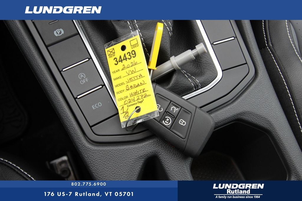 FWD 2026 Volkswagen Jetta 1.5T SE Opal White Pearl 8-Speed Automatic with Tiptronic Gray Artificial Leather, 4-Wheel Disc Brakes, 6 Speakers, ABS brakes, Active Blind Spot Monitor, Air Conditioning, Alloy wheels, AM/FM radio: SiriusXM with 360L, Auto-dimming Rear-View mirror, Auto-Dimming Rearview Mirror with HomeLink, Automatic temperature control, Brake assist, Bumpers: body-color, CloudTex and V-Tex Leatherette Seat Trim, Delay-off headlights, Driver door bin, Driver vanity mirror, Dual front impact airbags, Dual front side impact airbags, Electronic Stability Control, Emergency communication system: VW Car-Net Safe & Secure 5-year, Exterior Parking Camera Rear, First Aid Kit, Front anti-roll bar, Front Bucket Seats, Front Center Armrest, Front dual zone A/C, Front wheel independent suspension, Fully automatic headlights, Heated door mirrors, Heated Front Seats, Heated front seats, Heavy Duty Trunk Liner with VW CarGo Blocks, Illuminated entry, Leather Shift Knob, Leather steering wheel, Low tire pressure warning, Occupant sensing airbag, Outside temperature display, Overhead airbag, Overhead console, Panic alarm, Passenger door bin, Passenger vanity mirror, Power door mirrors, Power driver seat, Power moonroof: Panoramic, Power steering, Power windows, Radio data system, Radio: MIB3 Composition Media with 8" Touchscreen, Rain sensing wipers, Rear anti-roll bar, Rear reading lights, Rear seat center armrest, Rear window defroster, Remote keyless entry, Rubber Monster Mats Kit (set of 4), Speed control, Speed-sensing steering, Split folding rear seat, Steering wheel mounted audio controls, Tachometer, Telescoping steering wheel, Tilt steering wheel, Traction control, Trip computer, Variably intermittent wipers, VW Care, and Wheels: 17" Twin 5-Spoke 2-Tone Machined Alloy.