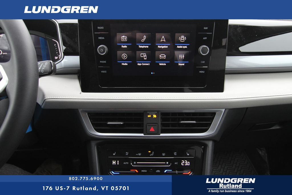 AWD 2026 Volkswagen Taos 1.5T SEL Platinum Gray Metallic 8-Speed Automatic with Tiptronic 4-Wheel Disc Brakes, 8 Speakers, ABS brakes, Active Blind Spot Monitor, Air Conditioning, Alloy wheels, AM/FM radio: SiriusXM with 360L, Auto High-beam Headlights, Auto-Dimming Rear-View Mirror, Auto-dimming Rear-View mirror, Automatic temperature control, Brake assist, Bumpers: body-color, Compass, Delay-off headlights, Driver door bin, Driver vanity mirror, Dual front impact airbags, Dual front side impact airbags, Electronic Stability Control, Emergency communication system: VW Car-Net Safe & Secure 5-year, Exterior Parking Camera Rear, First Aid Kit, Four wheel independent suspension, Front anti-roll bar, Front Bucket Seats, Front Center Armrest, Front dual zone A/C, Front reading lights, Front Strut Rear Multi-Link Suspension, Fully automatic headlights, Heated and Actively Ventilated Front Bucket Seats, Heated door mirrors, Heated front seats, Heated steering wheel, Illuminated entry, Leather Shift Knob, Low tire pressure warning, Navigation system: VW Car-Net Guide & Inform, Occupant sensing airbag, Outside temperature display, Overhead airbag, Overhead console, Panic alarm, Passenger door bin, Passenger vanity mirror, Perforated Vienna Leather Seating Surfaces, Power door mirrors, Power driver seat, Power moonroof, Power steering, Power windows, Radio data system, Radio: MIB3 Discover Media AM/FM/HD, Rain sensing wipers, Rear anti-roll bar, Rear seat center armrest, Rear window defroster, Rear window wiper, Remote keyless entry, Roadside Assistance Kit, Rubber Mats Kit, Security system, Speed control, Speed-sensing steering, Split folding rear seat, Spoiler, Steering wheel mounted audio controls, Tachometer, Telescoping steering wheel, Tilt steering wheel, Traction control, Trip computer, Variably intermittent wipers, Ventilated front seats, VW Care, and Wheels: 19" 2-Tone Machined Alloy.