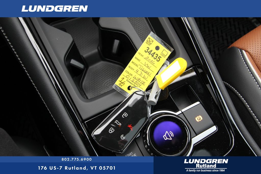 AWD 2026 Volkswagen Tiguan 2.0T SEL R-Line Turbo Opal White Pearl 8-Speed Automatic AWD, 12 Speakers, 4-Wheel Disc Brakes, 4-Wheel Independent Suspension, ABS brakes, Air Conditioning, Alloy wheels, AM/FM radio: SiriusXM with 360L, Auto High-beam Headlights, Auto-dimming Rear-View mirror, Auto-Dimming Rearview Mirror with HomeLink, Automatic temperature control, Brake assist, Bumperdillo Protection Plate in Black For Rear Bumper, Bumpers: body-color, Compass, Delay-off headlights, Driver door bin, Driver vanity mirror, Dual front impact airbags, Dual front side impact airbags, Electronic Stability Control, Emergency communication system, Exterior Parking Camera Rear, First Aid Kit, Four wheel independent suspension, Front anti-roll bar, Front Bucket Seats, Front Center Armrest, Front dual zone A/C, Front fog lights, Front reading lights, Fully automatic headlights, Genuine wood dashboard insert, harman/kardon® Speakers, Heads-Up Display, Heated and Actively Ventilated Front Seats, Heated door mirrors, Heated front seats, Heated rear seats, Heated steering wheel, Heavy Duty Trunk Liner with VW CarGo Blocks, Illuminated entry, Knee airbag, Leather Shift Knob, Leather steering wheel, Low tire pressure warning, Memory seat, Navigation System, Occupant sensing airbag, Outside temperature display, Overhead airbag, Overhead console, Panic alarm, Passenger door bin, Passenger vanity mirror, Perforated Varenna Leather Seating Surfaces, Power door mirrors, Power driver seat, Power Liftgate, Power moonroof: Panoramic, Power passenger seat, Power steering, Power windows, Radio data system, Radio: MIB4 Discover Media Touchscreen Navigation with AM/FM, Rain sensing wipers, Rear air conditioning, Rear anti-roll bar, Rear reading lights, Rear seat center armrest, Rear side impact airbag, Rear window defroster, Rear window wiper, Remote keyless entry, Roadside Assistance Kit, Rubber Monster Mats Kit (set of 4), Security system, Speed control, Speed-sensing steering, Split folding rear seat, Spoiler, Sport steering wheel, Steering wheel mounted audio controls, Tachometer, Telescoping steering wheel, Tilt steering wheel, Traction control, Trip computer, Turn signal indicator mirrors, Variably intermittent wipers, Ventilated front seats, VW Care, and Wheels: 20" 2-Tone Machined Alloy.