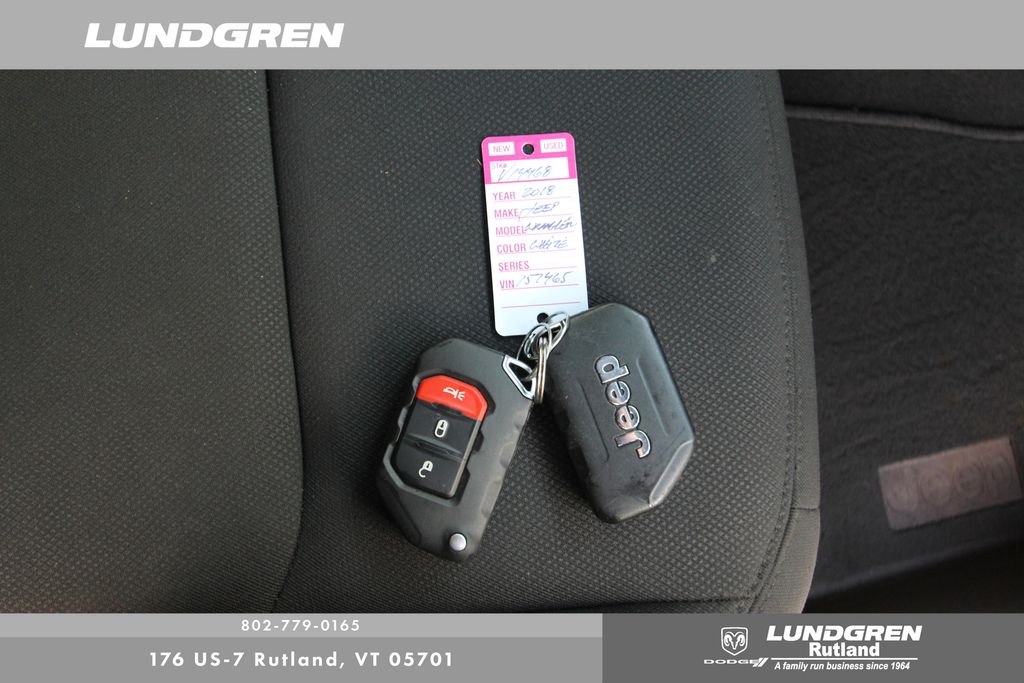 Full financing options available for all levels of credit. We want your trade in! We are Carfax vehicle history certified, buy with confidence. Wrangler Unlimited Sport S, 3.6L V6 24V VVT, 21.5 Gallon Fuel Tank (DISC), 8 Speakers, Automatic Headlamps, Brake assist, Deep Tint Sunscreen Windows, Electronic Stability Control, For More Info, Call 800-643-2112, Front 1-Touch Down Power Windows, Leather Wrapped Steering Wheel, ParkView Rear Back-Up Camera, Power Heated Mirrors, Quick Order Package 24S Sport S, Radio: Uconnect 3 w/5" Display, Remote Keyless Entry, Security Alarm, SiriusXM Satellite Radio, Speed Sensitive Power Locks, Sun Visors w/Illuminated Vanity Mirrors, Telescoping steering wheel, Tilt steering wheel. Clean CARFAX. 2018 Wrangler Bright White Clearcoat Jeep Unlimited Sport S 4WD