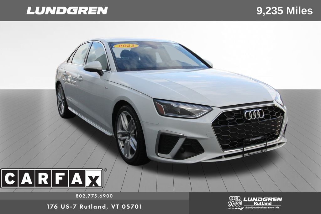 Our factory trained technicians completed the safety check, replaced the front brakes and rear brakes along with an oil and filter change. A4 45 S line Premium Plus quattro, 1 Owner, 2 Rear USB Charge Ports, Adaptive Cruise Control, Alarm System w/Motion Sensor, Audi Active Lane Assist, Audi Advanced Key, Audi Phone Box, Audi Side Assist w/Pre Sense Rear, Audi Virtual Cockpit Plus, Auto-Dimming Exterior Mirrors w/Memory, Auto-dimming Rear-View mirror, Bang & Olufsen Sound System w/3D Sound, Convenience Package, Exterior Parking Camera Rear, Hands-On Detection Steering Wheel, Heated door mirrors, Heated Front Sport Bucket Seats, Heated Steering Wheel, Leather Seating Surfaces, Leatherette Covered Center Console & Door Armrests, Memory for Driver's Seat, Parking System Plus, Power door mirrors, Power Folding Exterior Mirrors, Power moonroof, Premium Plus Package, Remainder of factory warranty, Remote keyless entry, SiriusXM w/360L, Sold and Serviced by Audi Rutland, Telescoping steering wheel, Tilt steering wheel, Top View Camera System, Traffic Jam Assist, Wheels: 18" 5-Double-Spoke Design. Clean CARFAX. CARFAX One-Owner. 2023 A4 Glacier White Audi 45 S line Premium Plus quattro
