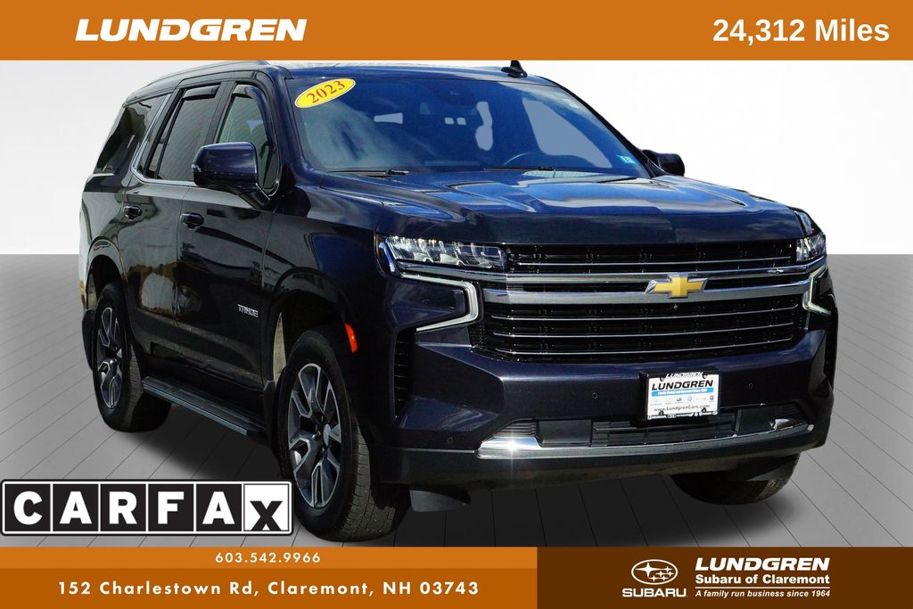 This 2023 Chevrolet Tahoe LT comes with a CLEAN Carfax report and has 25,000 miles less than market average. It delivers full-size comfort and capability with a powerful V8 engine, 3-row leather seating, power liftgate, Apple CarPlay/Android Auto, and advanced driver-assist features. Spacious, refined, and ready for family adventures or long hauls in style. Give us a call today at 603-542-9966 or stop by!